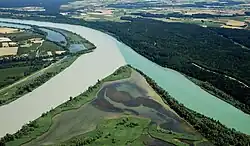 The Salzach (Austrian: [ˈsaltsax]; German: [ˈzaltsax]) is a river in Austria and Germany. It is 227 kilometres (141 mi) in length and is a right tributary of the Inn, which eventually joins the Danube. Its drainage basin of 6,829 km2 (2,637 sq mi) comprises large parts of the Northern Limestone and Central Eastern Alps. 83% of its drainage basin (5,643 km2 (2,179 sq mi)) lies in Austria, the remainder in Germany (Bavaria).[1] Its largest tributaries are Lammer, Berchtesgadener Ache, Saalach, Sur and Götzinger Achen.