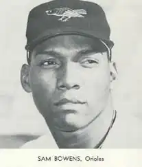 Samuel Edward Bowens (March 23, 1938 – March 28, 2003) was an American outfielder in Major League Baseball who played for the Baltimore Orioles (1963–1967) and Washington Senators (1968–1969). Bowens batted and threw right-handed. He was born in Wilmington, North Carolina. During his playing career he was considered to have one of the strongest throwing arms in the league, however knee injuries and drinking problems cut his career short.[1][2] He was named "one of the nicest people I have ever met" by former teammate Wally Bunker.[1]