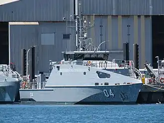 - ^ a b c Morse, Cameron (2023-11-22). "AUSTAL AUSTRALIA DELIVERS 18th GUARDIAN CLASS PATROL BOAT". Austal (Press release). HMAS Stirling. Archived from the original on 2023-11-22. Retrieved 2023-11-22.