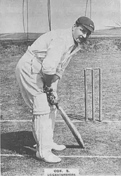 Coe scored 17,438 first-class runs at an average of 24.69 and passed 1,000 for a season seven times.[1] His best seasonal total was 1,258 in 1914 which included his best innings of 252 not out against Northamptonshire in four hours.[2] This score was Coe's only double century and remained the county's highest score until beaten by Phil Simmons in 1994.[3]