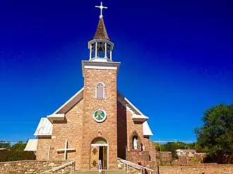 It is a cruciform-plan church, located about 2.5 miles (4.0 km) north of the ruins of the Pecos Pueblo ruins.[2]