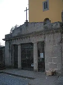 The Rococo altar had already been built in 1759,[16] while two Calabrian priests Giovanni Andrea and Nicola Fico financed in 1788 the construction of the side altar of the Most Holy Crucifix,[16] which was later used by the Secular Franciscan Order, as evidenced by the coat of arms affixed to the altar itself.[16] In 1792 the two Calabrian priests financed the shrine again, completing the rectory tower with two more floors and building a small bell gable above it.[16]