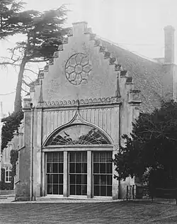 William Pollet Brown Chatteris (1810–1889),[55] JP, DL (1852, Berks), educated at Eton and Brasenose college, Oxford, and son of a City of London banker, William Chatteris (died 1819) of Lombard street, who eventually bought the freehold, enfranchised the estate, from the Ecclesiastical Commissioners, in 1875. The Dean and Canons of Windsor (with Westminster Abbey and the cathedrals of England and Wales) having been obliged to hand over their lands to the Ecclesiastical Commissioners, now the Church Commissioners, on 26 June 1867. At the time of the 1851 census Chatteris and his wife lived in the priory with an indoor staff of 12; butler, footman, under-butler, housekeeper, lady's maid, cook, laundry maid, three house maids, kitchen maid, and a scullery maid. One of his sisters, Eliza (died 1866),[56] had married Edmund Arbuthnot (1793–1873) of Newtown in 1824, Sandlefords's closest village, which would have been Chatteris' introduction to the area as he took on the lease of Sandleford in 1835.[57] His first wife (married 1833) was Anne (died 1848) eldest daughter of Rt Rev Alexander Arbuthnot, DD, Bishop of Killaloe (1768–1828), and his brother-law Edmund's first cousin. He planted a world-class azalea and rhododendron garden. He died at Sandleford Priory leaving £155,141, his executors were his former half-brother-in-law Sir Charles George Arbuthnot, GCB, (1824 –1899), and the Rev. Frances Charles Gosling, vicar in charge of Newtown, 1859–1900. Another half-brother-in-law Sir Alexander John Arbuthnot, KCSI CIE (1822–1907) lived at nearby Newtown house;[58]