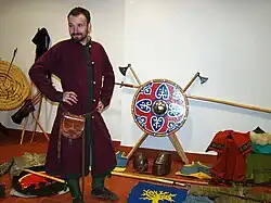 The initial efforts to collect artifacts for the future Museum of the Sanok Land were undertaken by Aleksander Rybicki, Adam Fastnacht, and Stefan Stefański, who were students at the Sanok gymnasium at the time.[3] A significant role in establishing the Museum of the Sanok Land was played by the then-mayor of Sanok, Tadeusz Malawski, who gathered numerous artifacts and memorabilia in the city hall, which were later transferred to the newly established museum.[4] The institution was formally established in 1934 as the Museum of the Sanok Land, initiated by Dr. Jadwiga Przeworska from the Ministry of Religious Affairs and Public Education and the Sanok starosta, Dr. Bolesław Skwarczyński.[5][6] Under Polish auspices, the Museum of the Sanok Land operated until 1939 at the Sanok Castle, with its exhibition divided into historical, ecclesiastical, and ethnographic sections.[7] Its mission was to collect, scientifically study, and make accessible the historical artifacts of the Sanok Land.[8] In 1934, a commemorative plaque was installed at the museum's entrance, reading: "In this building, part of the former Sanok Castle built by King Casimir the Great in the mid-14th century, notable for the wedding celebrations of King Władysław Jagiełło on 2 May 1417, rebuilt under King Sigismund the Old by his wife Bona Sforza in the 16th century, the Museum of the Sanok Land was established through the efforts of the Friends of the Sanok Land Society in 1934".[9][10] Historical research on the Sanok Land was conducted by Adam Fastnacht. In September 1937, an exhibition titled "Sanok Land in Painting, Sculpture, and Photography" was organized.[11]