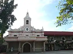 Pursuant to the local government[26][27] the political seat of the municipality is at the Municipal Town Hall. The gobernadorcillo is the chief executive who holds office in the Presidencia. During the American rule (1898–1946), the elected mayor and local officials, including the appointed ones, hold office at the Municipal Town Hall. The legislative and executive departments perform their functions in the Sangguniang Bayan (Session Hall) and Municipal Trial Court, respectively, and are in the Town Hall.