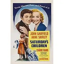 Saturday's Children is a 1940 American drama film directed by Vincent Sherman and starring John Garfield, Anne Shirley, and Claude Rains. It is a third-time remake of the original Maxwell Anderson play with a previous version released in 1935 under the title Maybe It's Love.[1]