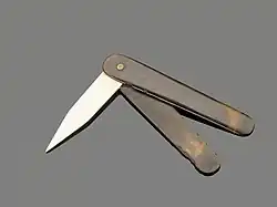 The first medical writings of ancient Greeks indicate they were commonly using tools identical to today's scalpels around 500 BC.[3] The amphismela was an anatomical knife-edged on both sides. The term comes from the Greek αμφι (utrinque, "on both sides"), and μελιζω (inside, "I cut").[4]