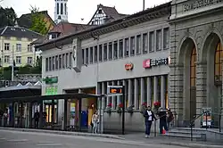 Schaffhausen railway station (German: Bahnhof Schaffhausen) is a railway station in Schaffhausen, the capital of the Swiss canton of Schaffhausen.[4] The station is jointly owned by the Swiss Federal Railways (SBB CFF FFS) and Deutsche Bahn (DB), and is served by trains of both national operators, as well as trains of the Swiss regional operator Thurbo.