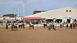 It is the largest Arabian horse show in the world,[3] and one of the largest breed shows in the world.[1] The show is sanctioned by the United States Equestrian Federation and the Arabian Horse Association.[4] Called the "Super Bowl of the Arabian world", 2015 version marked the 60th anniversary of the show.[5] The Diamond Jubilee of the event featured more than 2250 horses, and over $1 million in prize money,[6] with over 1300 farms represented.[1] The overall prize money increased to $3 million in 2021.[7] It is the first of three legs of the "Arabian Triple Crown", the other two being the Canadian National Arabian Championship and the U.S. Nationals.[8]