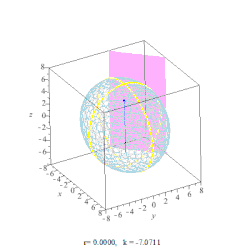 A secant plane is a plane containing a nontrivial section of a sphere or an ellipsoid, or such a plane that a sphere is projected onto. Secant planes are similar to tangent planes, which contact the sphere's surface at a point, while secant planes contact the surface along curves.
