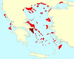 The Second Athenian League was a maritime confederation of Greek city-states that existed from 378 to 355 BC under the leadership (hegemony) of Athens. The alliance represented a partial revival of the Delian League, which had been disbanded in 404 BC following the defeat of Athens in the Peloponnesian War. The new League was centered in the Aegean and included over 60 states,[1] among which were Kos, Mytilene, Rhodes, and Byzantium. It was primarily formed as a defensive alliance against Sparta and secondly the Persian Empire. The new League's main objective was to preserve peace in Greece and counterbalance Sparta's growing hegemony and aggression.[2][3] The League largely revived Athenian influence in the Greek world, reestablishing it as the strongest naval power in the eastern Mediterranean.[1] This time, Athens made conscious efforts to avoid the strict terms that had eventually rendered the previous Delian League unpopular.[1] The alliance lasted until 355 BC, when most of the allied cities became independent following the Social War that broke out in 357 BC.[4]