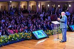 During his first two governments, Lula prioritized the fight against hunger, as well as extreme poverty and social exclusion as part of his projects, he created several projects such as Fome Zero, which granted him several prizes, such as the World Food Prize by the World Food Prize Foundation in 2011, in recognition of his efforts to combat hunger.[75] In 2014, under Dilma's presidency, Brazil left the ONU Hunger Map, but returned to it in the following years due to the 2014/2020 economic crises and subsequent mass unemployment and bankruptcy, as well as the lack of public policies aimed at the area during the following governments, according to analysts.[76][77]