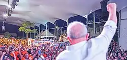 The Workers' Party national committee, on 13 April 2022, approved the nomination of former Governor of São Paulo Geraldo Alckmin (PSB) for vice president.[7] The ticket was officialized on 7 May, in a coalition formed by the Brazil of Hope Federation (formed by Workers' Party, Communist Party of Brazil and Green Party), Brazilian Socialist Party, Solidarity and PSOL REDE Federation.[8][9] With the withdrawal of André Janones on 4 August, the ticket received official support of Avante and Agir.[10]