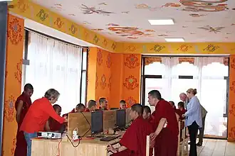 Monks at Serlung Monastery at an editing workshop for Dzongkha Wikipedia