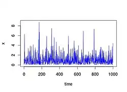 Random draws from a Pareto distribution with mean = 1 and α = 1.5 (Wild randomness)