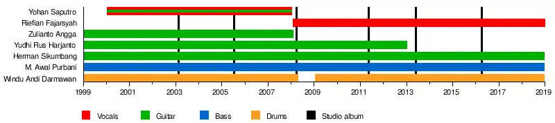 - M. Awal "Bani" Purbani – bass guitar (1999–2018; his death)