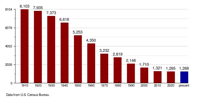 - ^ Forstall, Richard L. (April 20, 1995). "Population of Counties by Decennial Census: 1900 to 1990". United States Census Bureau. Archived from the original on February 19, 1999. Retrieved July 20, 2014.