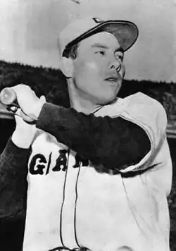 Shigeru Chiba (千葉 茂, Chiba Shigeru; 10 May 1919 – 9 December 2002) was a Japanese baseball second baseman who played with the Tokyo Kyojin/Yomiuri Giants from 1938 to 1941, and again from 1946 to 1956. He later managed the Kintetsu Buffalo from 1959 to 1961, and was elected to the Japanese Baseball Hall of Fame in 1980.