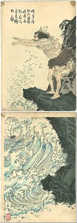 Shunkan (俊寛; Japanese pronunciation: [ɕɯꜜŋ.kaɴ],[1] c. 1143 – 1179) was a Japanese monk who, after taking part in the Shishigatani plot to overthrow Taira no Kiyomori, was exiled along with two others to Kikai-ga-shima. His story is featured in the Heike monogatari, and in a number of traditional derivative works, including the Noh play Shunkan and jōruri play Heike Nyogo-ga-shima. Twentieth century authors Kan Kikuchi and Ryūnosuke Akutagawa also produced works entitled Shunkan.