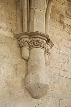 The abbey church was constructed between 1175 and 1230 in predominantly Romanesque style with some Gothic elements on the highest part of the terrain. The building, a basilica with transepts, has a pointed barrel vault, with a plain ribbed vault at the crossing, on substantial cruciform columns, the capitals of which, in the form of very simple foliage motifs, are very finely carved.