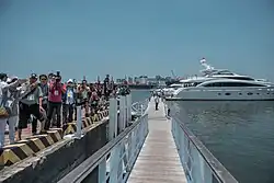 The wharf is accessible within walking distance west from Sanduo Shopping District Station of Kaohsiung MRT.[3] The wharf can also be accessed by walking southwest of the Kaohsiung Exhibition Center light rail station.