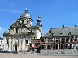 Located on the south side of the Blandijnberg, Ghent's highest point, the Sint-Pietersplein is at the heart of Ghent's student neighbourhood. It is directly adjacent to the Arts & Philosophy Faculty of Ghent University in the north; and leads to the Overpoort, known for its concentration of student bars, in the south. The long east side harbours the Baroque Our Lady of St. Peter's Church and St. Peter's Abbey, as well as several neoclassical 19th-century houses and the side-entrance to the university's Faculty of Economics and Business. Opposite the church and abbey is a monumental staircase leading to the adjacent Sint-Amandplein, sided by bistros and restaurants.[2]