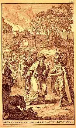 Although the site is known to have been settled since at least the 10th millennium BCE, the earliest evidence of any connection with Ancient Egypt is the 26th Dynasty, when a necropolis was established. Ancient Greek settlers at Cyrene made contact with the oasis around the same time (7th century BCE), and the oracle temple of Amun (Greek: Zeus Ammon), who, Herodotus was told, took the image here of a ram. Herodotus knew of a "fountain of the Sun" that ran coldest in the noontime heat.[20] During his campaign to conquer the Persian Empire, Alexander the Great reached the oasis, supposedly by following birds across the desert. The oracle, Alexander's court historians alleged, confirmed him as both a divine personage and the legitimate Pharaoh of Egypt, though Alexander's motives in making the excursion, following his founding of Alexandria, remain to some extent inscrutable and contested.[21] During the Ptolemaic Kingdom, its Ancient Egyptian name was sḫ.t-ỉm3w, meaning "Field of Trees".[22]