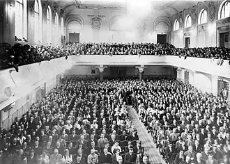 The Slovene People’s Party was founded under the name Catholic National Party (Katoliška narodna stranka) in 1892 in Ljubljana with the aim of working in the Carniola region. On 27 November 1905, the ruling body of the party adopted a motion changing the name to Slovene People’s Party. Under the influence of Ivan Šusteršič, Evgen Lampe and Janez Evangelist Krek, the party evolved in the early years of the new century from a conservative party into a Christian Social party, based on mass support. The main plank of its programme was support for workers and farmers. Šusteršič, Krek and their colleagues worked to establish a broad network of cooperatives and lenders, which offered credit on favourable terms and assistance. By 1907, they had already established 433 collectives.