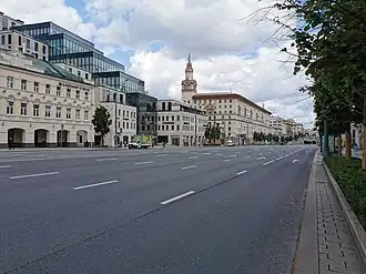 Smolenskaya Square (Russian: Смоленская площадь) is a square in the center of Moscow. The Garden Ring crosses the square. Arbat street runs towards it and ends near the Foreign Ministry skyscraper, the main building of the Ministry of Foreign Affairs of Russia. The latter faces Smolenskaya square.