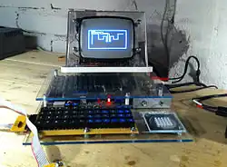 The first known home computer version, Worm, was programmed by Peter Trefonas for the TRS-80 and published by CLOAD magazine in 1978.[2] Versions followed from the same author for the PET and Apple II. An authorized version of the Hustle arcade game, itself a clone of Blockcade, was published by Milton Bradley for the TI-99/4A in 1980.[8]