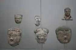The emperor's most powerful relative was the empress dowager, widow to the previous emperor and usually the natural mother of the emperor.[6] If the grandmother of an emperor—the grand empress dowager—was still alive during his reign, she enjoyed a superior position over the empress dowager.[6] Emperors often sought the approval of the empress dowager for their decisions.[7] If an emperor was only a child, he acted merely as a figurehead while the empress dowager dominated court politics.[7] She not only had the right to issue edicts and pardons, but if the emperor died without a designated heir, she had the sole right to appoint a new emperor.[8] Below the empress dowager were the empress and imperial concubines.[8] Although she was the wife of the emperor, the empress's position at court was not secure and she could be removed by the emperor.[9] However, the empress did enjoy the submission of concubines as her subordinates, who advocated the elevation of their sons over the empress's at their own peril.[9] In the early Western Han, imperial relatives and some military officers who had served Emperor Gaozu were made kings who ruled over large semi-autonomous fiefs, but once the non-related kings had died off, an imperial edict outlawed all non-Liu family members from becoming kings.[10] The emperor's brothers, paternal cousins, brother's sons, and emperor's sons—excluding the heir apparent—were made kings.[10] The emperor's sisters and daughters were made princesses with fiefs.[11] Although the central government eventually stripped away the political power of the kings and appointed their administrative staffs, kings still had a right to collect a portion of the taxes in their territory as personal income and enjoyed a social status that ranked just below the emperor.[12] Each king had a son designated to be heir apparent, while his other sons and brothers were given the rank of marquess and ruled over small marquessates where a portion of the taxes went to their private purse.[13] Although kings and marquesses enjoyed many privileges, the imperial court was at times aggressive towards them to check their power. Starting with Emperor Gaozu's reign, thousands of noble families, including those from the royal houses of Qi, Chu, Yan, Zhao, Han, and Wei from the Warring States period, were forcibly moved to the vicinity of the capital Chang'an.[14] In the first half of Western Han, resettlement could also be imposed on powerful and wealthy officials as well as individuals who owned property worth more than a million cash.[14]