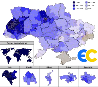 - ^ (in Ukrainian) The CEC showed the top 10 parties that won the most seats in the election Archived 2023-01-23 at the Wayback Machine, Ukrainska Pravda (18 November 2020)