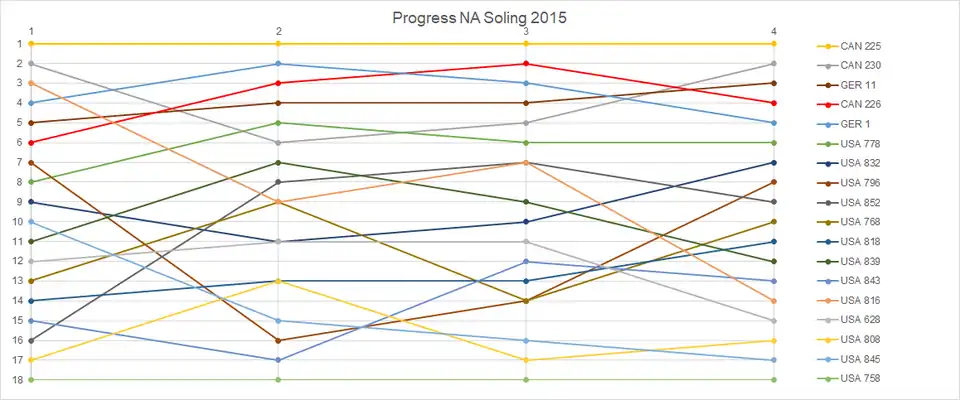 7. ^ Collins, Matias, ed. (2015). "North American Championship / SSYC, Wilmette, IL 27/08/2015 To 30/08/2015. / Rk=1.5". soling.com. International Soling Association. Retrieved 16 October 2019.
