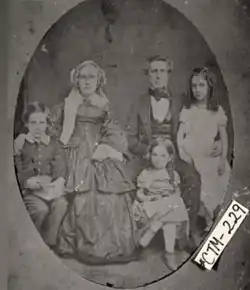 ![]() Cohen and his family, around 1854. His children are Gratz (left), Miriam (center) and Belle (right) | |