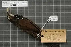 - Tvardikova K. (2022). "Rhipidura -threnothorax Müller, S, 1843". New Guinea Birds online. Retrieved 2022-03-17.