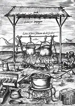 Open-air soup cooking, by Bartolomeo Scappi, 1570