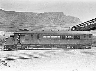 The railmotor was initially placed in service on the Milnerton line for a brief period and often operated with a passenger carriage in tow. When this line was closed to regular traffic on 31 July 1930, the railmotor was transferred to the Cape Flats line.[1][2]