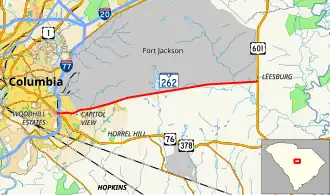 South Carolina Highway 262 (SC 262) is a 14.750-mile (23.738 km) primary state highway in the U.S. state of South Carolina. It serves primarily as the southern border of Fort Jackson.