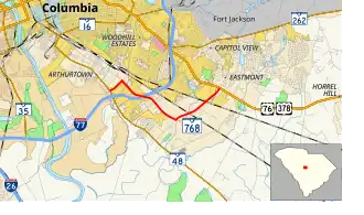 South Carolina Highway 768 Connector (SC 768 Conn.) is a connector route of SC 768 between the mainline (Shop Road / Pineview Road) and Longwood Road, south-southeast of Columbia.[4] It is known as Shop Road Extension and is an unsigned highway.[5]
