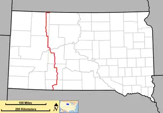 South Dakota Highway 73 (SD 73) is a state route that runs across western South Dakota. It begins at the Nebraska border, north of Merriman, Nebraska, as a continuation of Nebraska Highway 61. It runs to the North Dakota border, where it continues as North Dakota Highway 49. It is just more than 255 miles (410 km) in length.