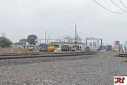 The South Kensington–West Footscray line is a railway line in the inner western suburbs of Melbourne, Australia. Linking South Kensington station on the Werribee line and associated freight terminals to Tottenham Yard and other freight lines, it is a primarily freight only line with no overhead wires, passenger stations or platforms. The most visible part of the line is where it dives under Footscray station and into a tunnel under nearby Bunbury Street.[1]