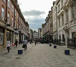 The street was built in the mid-18th century as part of the Conduit Mead Estate. It was extensively rebuilt around 1900, but many of the original Georgian houses remain. It is now pedestrianised and contains many shops selling items such as women's fashion and jewellery.[1]