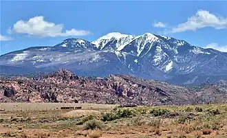 South Mountain is an 11,798-foot (3,596 m) peak in San Juan County, Utah in the United States, about 5 miles (8.0 km) north of La Sal, Utah. It is part of the La Sal Mountains.[2] Precipitation runoff from this mountain drains into tributaries of the Colorado River. The nearest town is Moab, 20 mi (32 km) to the northwest, and the nearest higher neighbor is Mount Tukuhnikivatz, 2.64 mi (4.25 km) to the north.