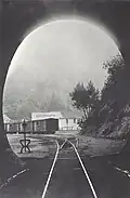 Three of these tunnels were sealed shortly after the line was abandoned: #2/Summit, #3/Glenwood (Laurel), and #4/Mountain Charlie (Clems). Under contract to Southern Pacific, the F.A. Christie railroad salvage firm removed the track and trestles and, when this was completed in April 1942, dynamited these three tunnels. Although a long-persistent rumor holds that destruction of the tunnels was motivated by post-Pearl Harbor fears of a Japanese invasion of the United States West Coast, the decision to dynamite them predated the Pearl Harbor attack and was made solely for business reasons.[26] Tunnel #5/Zayante was also part of the abandoned line, but it was used as a private road after the tracks were abandoned and then as a storage site.[22]