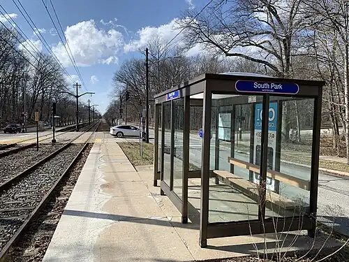![]() South Park station westbound platform in March 2022 | |||||||||||