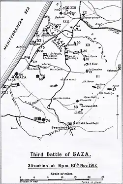 - XXII Corps commanded by Refet Bey with headquarters at Jebaliye holding the strongly fortified positions around Gaza with the 3rd, 53rd Divisions