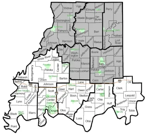 Illinois: Wabash, White Indiana: Spencer Kentucky: Union |