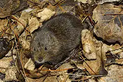The southwestern water vole or southern water vole (Arvicola sapidus) is a large amphibious vole native to most of France and southwestwards through Spain and Portugal. It is listed on the IUCN Red List as a Near Threatened species.[1]