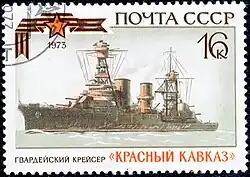 Krasny Kavkaz (from Russian: "Красный Кавказ" – "Red Caucasus") was a cruiser of the Soviet Navy that began construction during World War I, but was still incomplete during the Russian Revolution. Her design was heavily modified by the Soviets, and she was completed in 1932. During World War II she supported Soviet troops during the siege of Odessa, siege of Sevastopol, and the Kerch–Feodosiya operation in the winter of 1941–42. She was awarded the Guards title on 3 April 1942. She was reclassified as a training ship in May 1947 before being expended as a target in 1952.