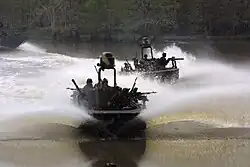 Special Operations Craft – Riverine is a boat used by the United States Navy to perform short-range insertion and extraction of special operations forces in river and near-shore environments. It replaced the Patrol Boat, River, and the mini armored troop carrier.[1][2]